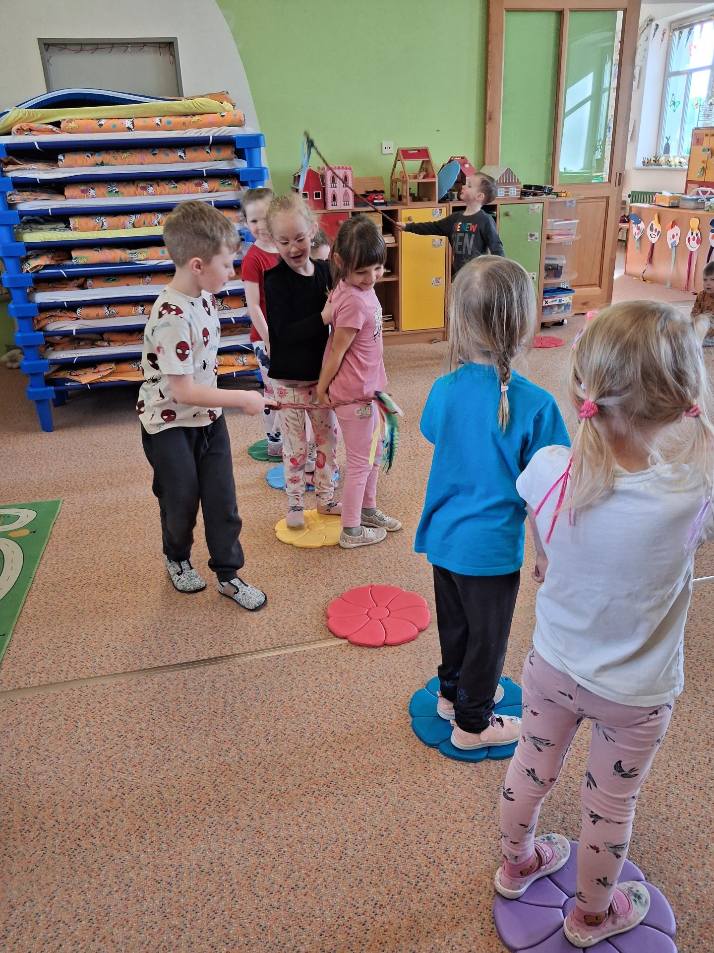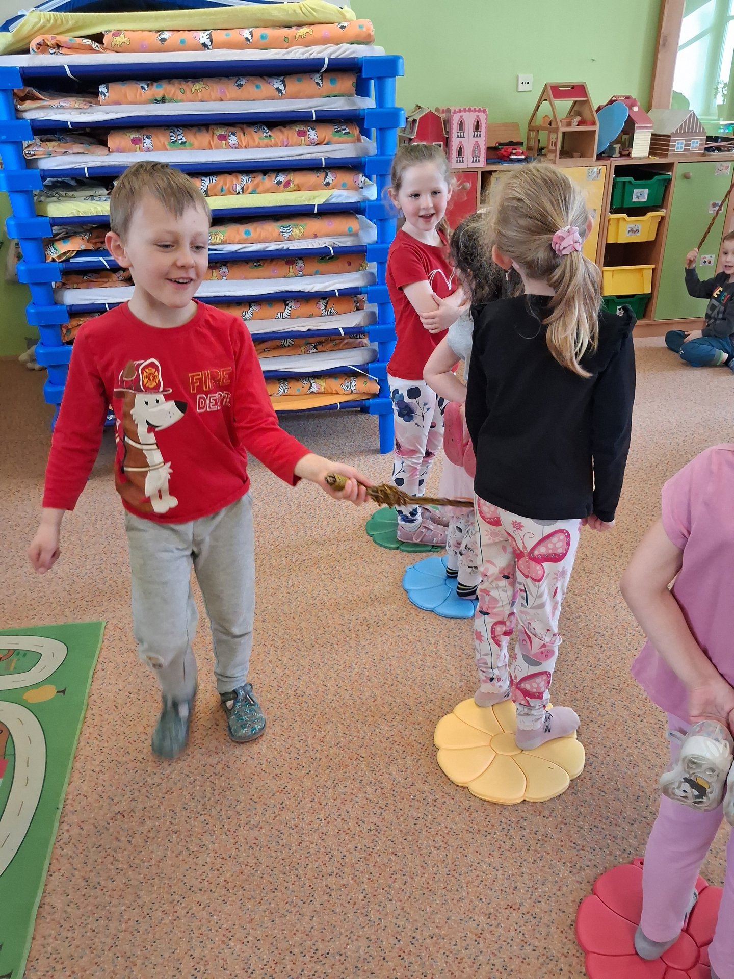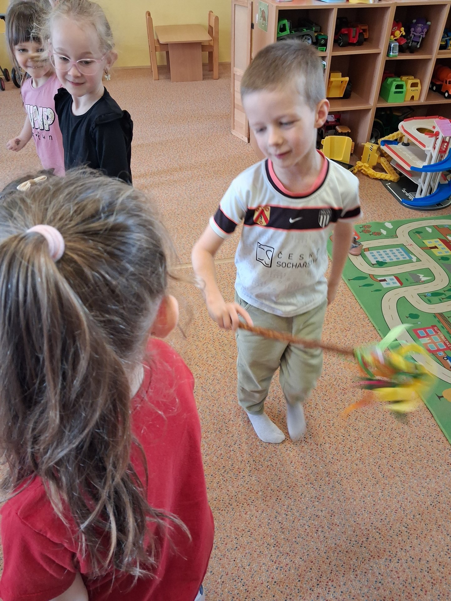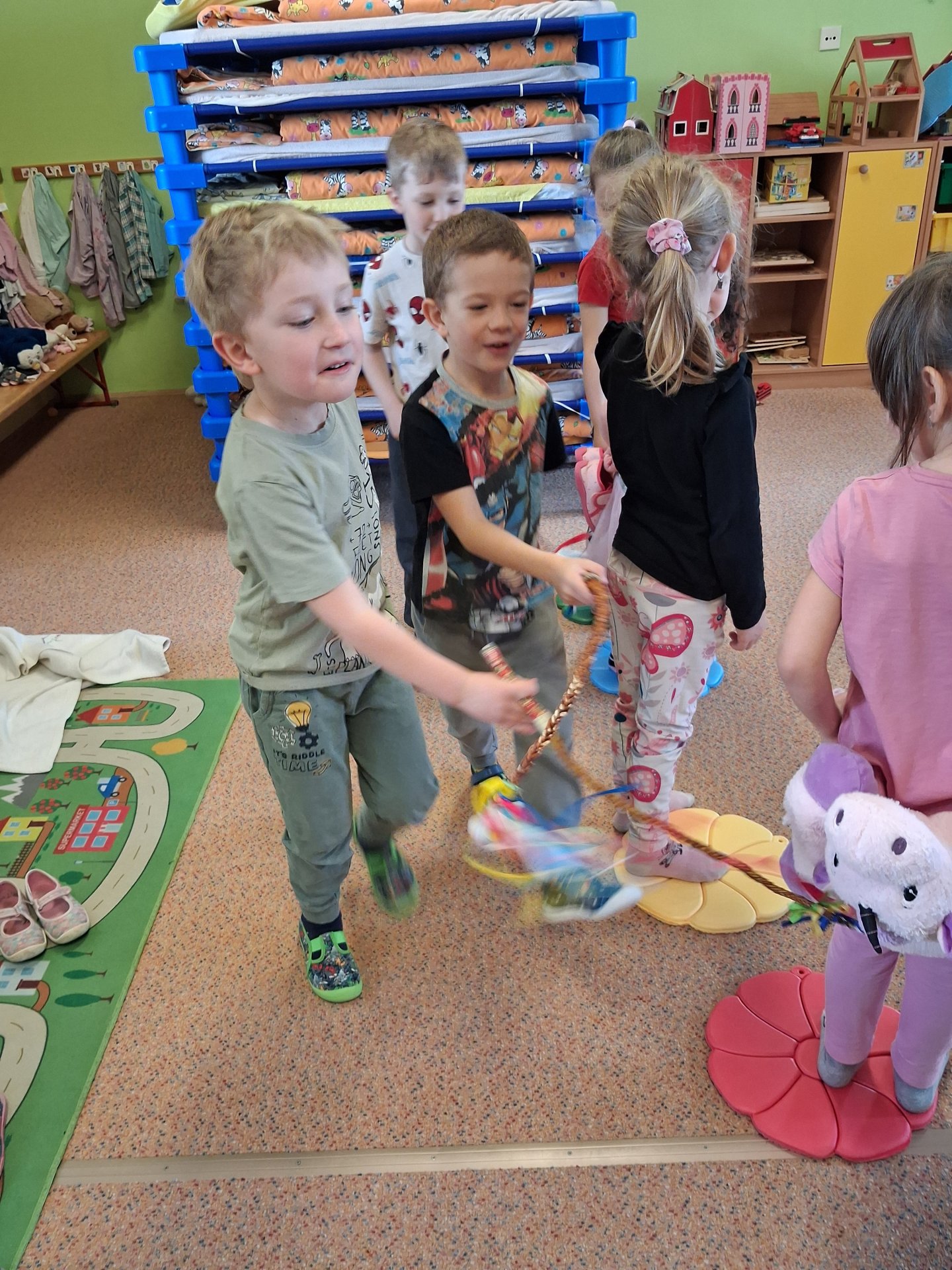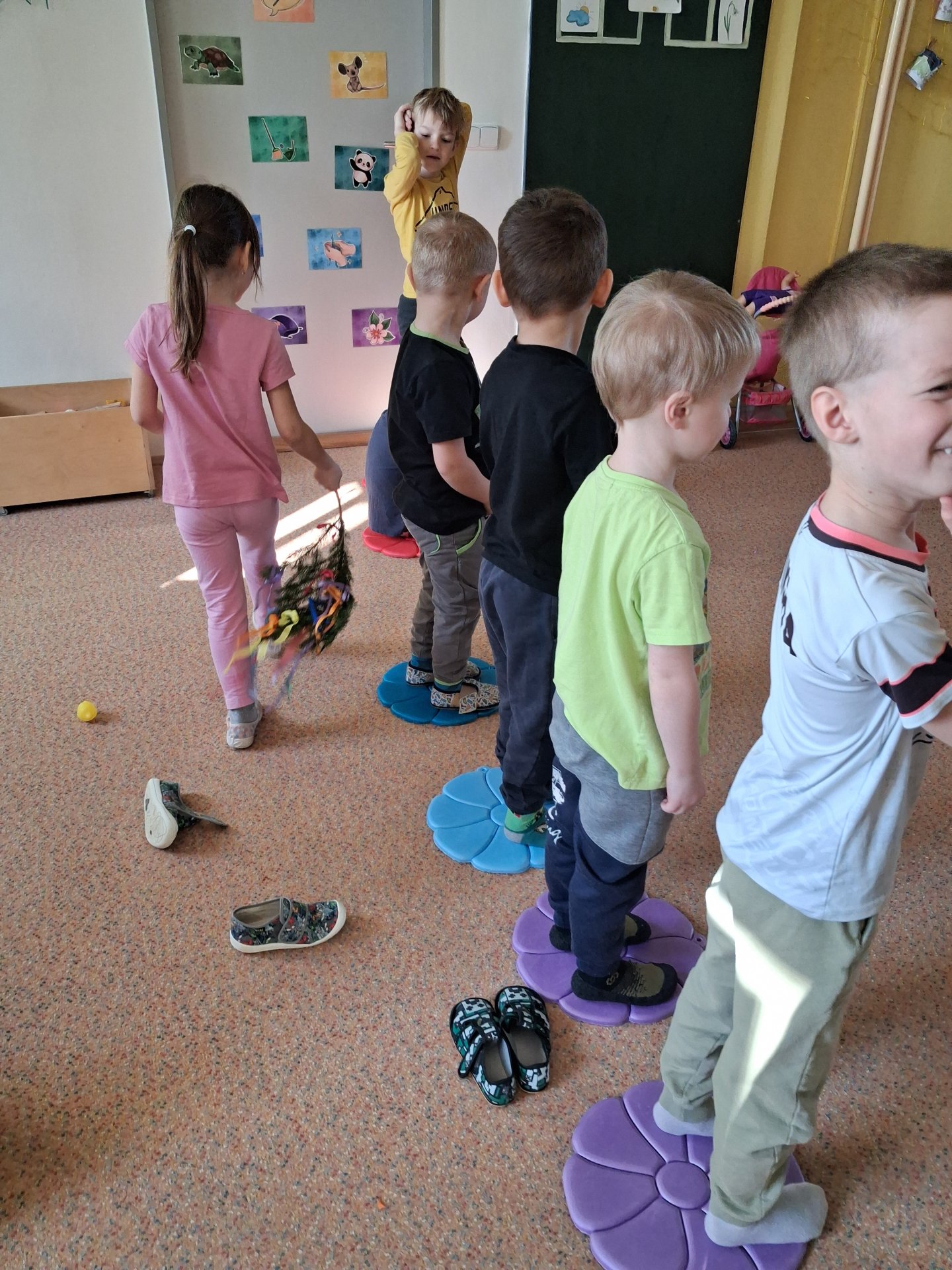 Na svátky jara - Velikonoce jsme se již moc těšili. Ve třídě si povídáme o tradicích, tvoříme a zpíváme koledy. Velikonoce ve školce vyvrcholily koledou, kdy koledovali kluci i holky. Každý si přinesl pomlázku nebo líto a vykoledoval své kamarády. Na zahradě děti čekalo i hledání vajíček s úkoly jako je třídění podle barev, třídění podle zdobení a předškoláci skládali záludné puzzle.