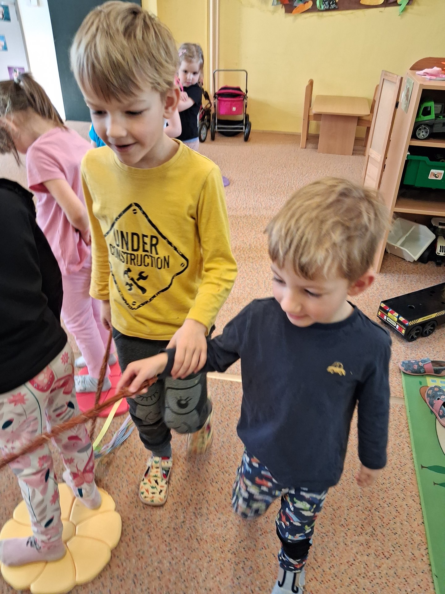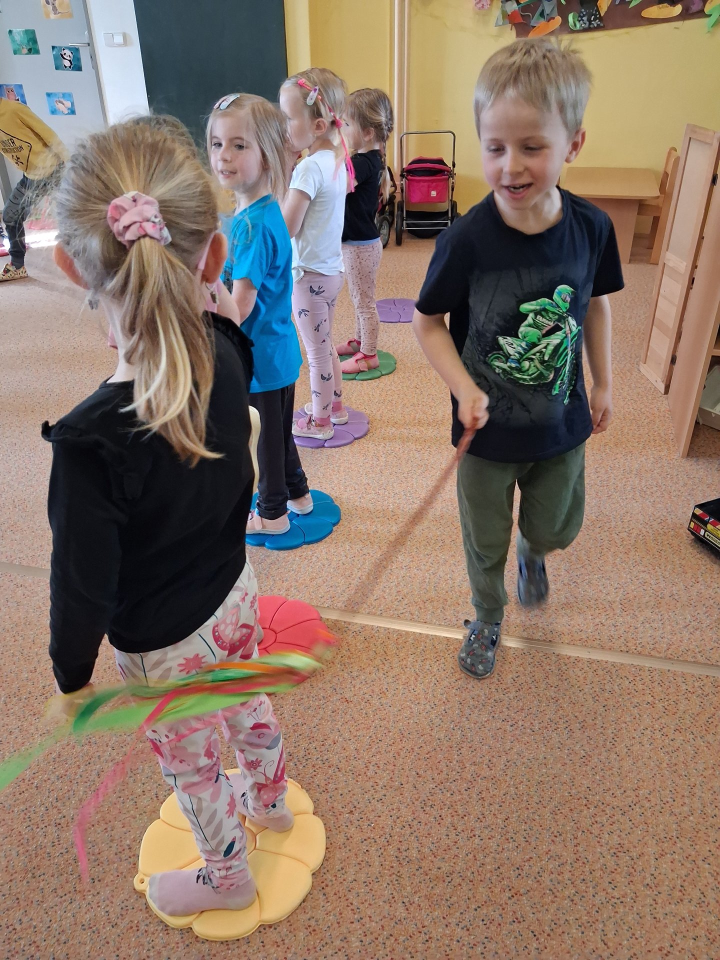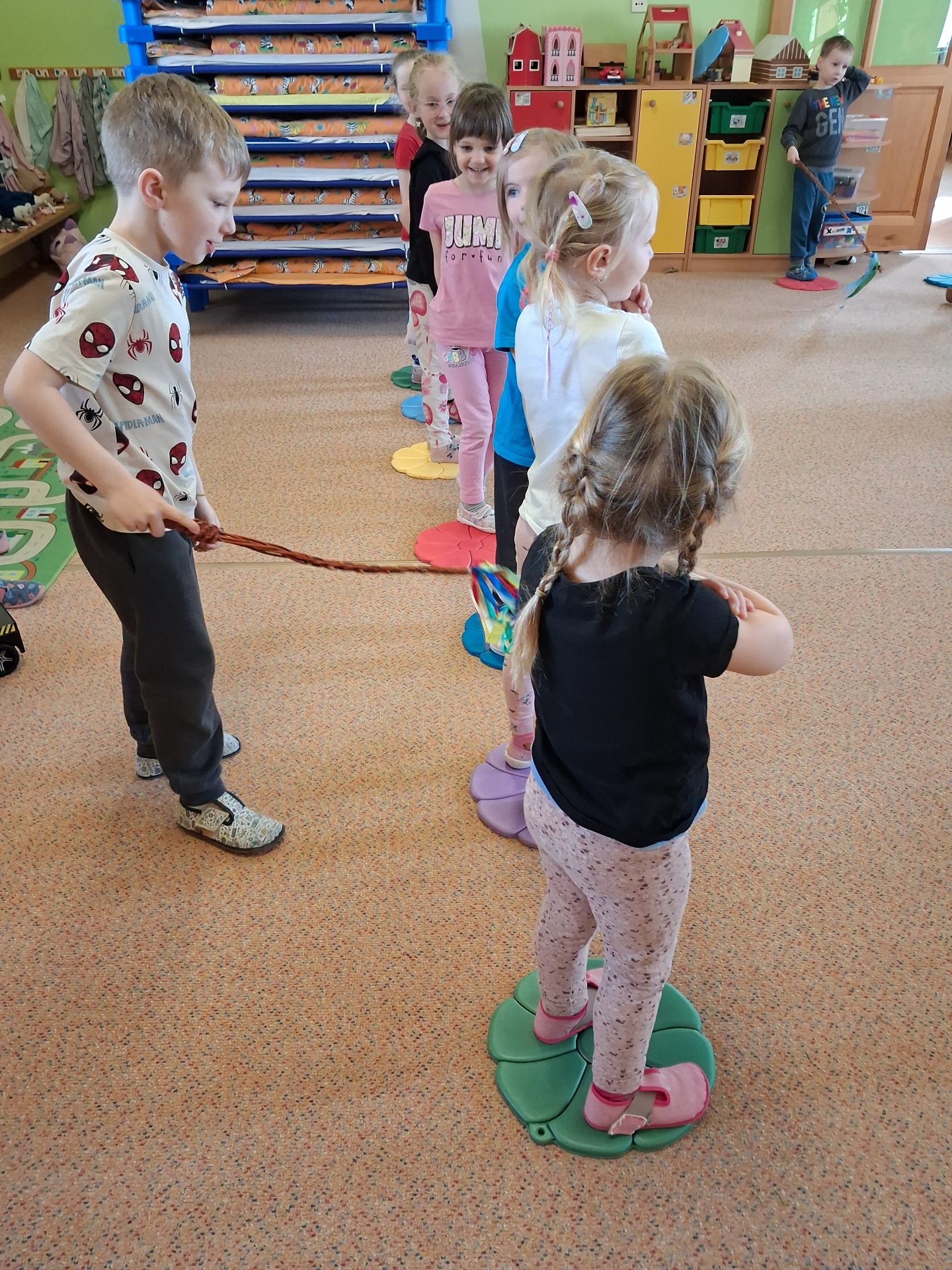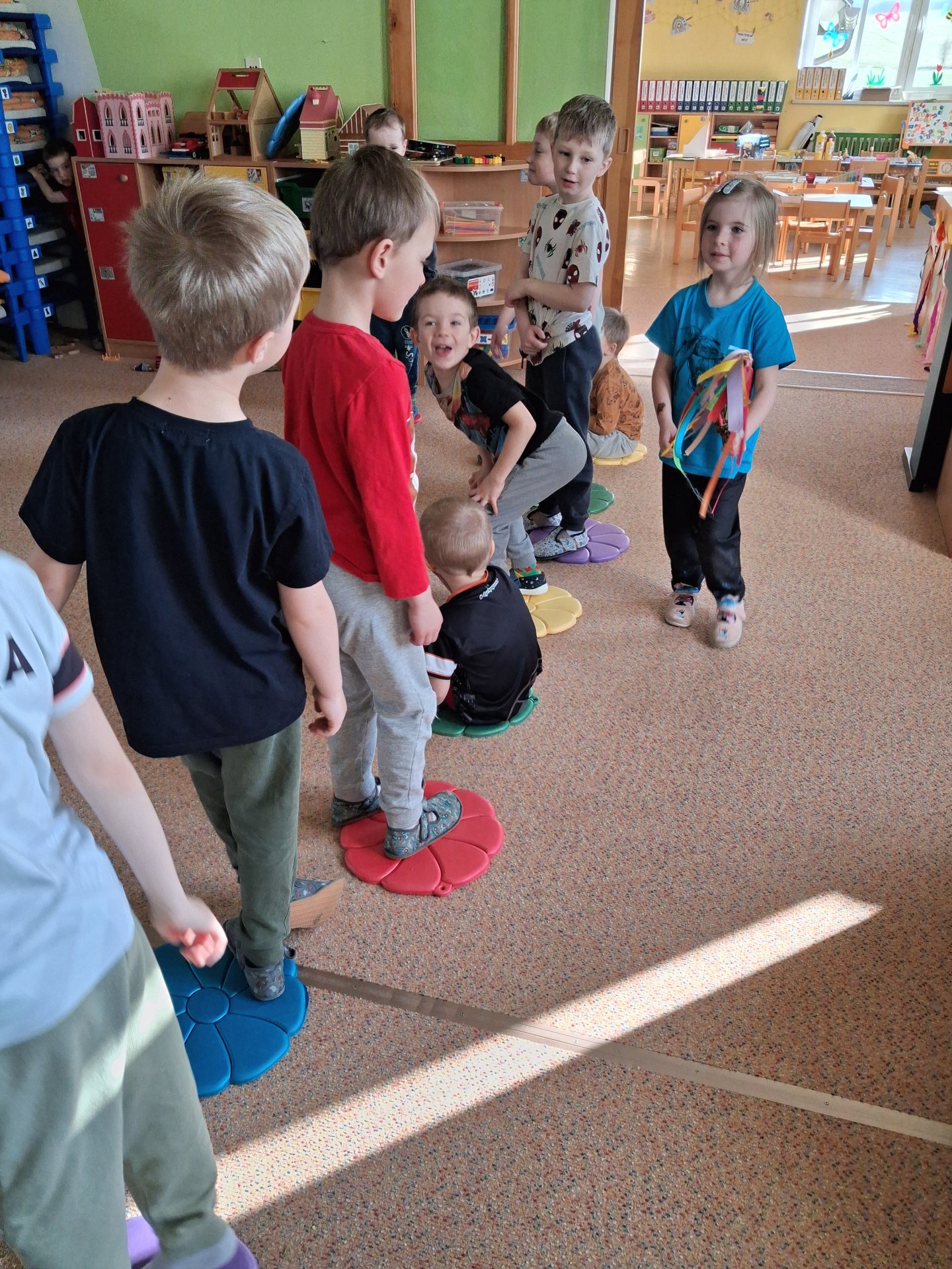 Na svátky jara - Velikonoce jsme se již moc těšili. Ve třídě si povídáme o tradicích, tvoříme a zpíváme koledy. Velikonoce ve školce vyvrcholily koledou, kdy koledovali kluci i holky. Každý si přinesl pomlázku nebo líto a vykoledoval své kamarády. Na zahradě děti čekalo i hledání vajíček s úkoly jako je třídění podle barev, třídění podle zdobení a předškoláci skládali záludné puzzle.