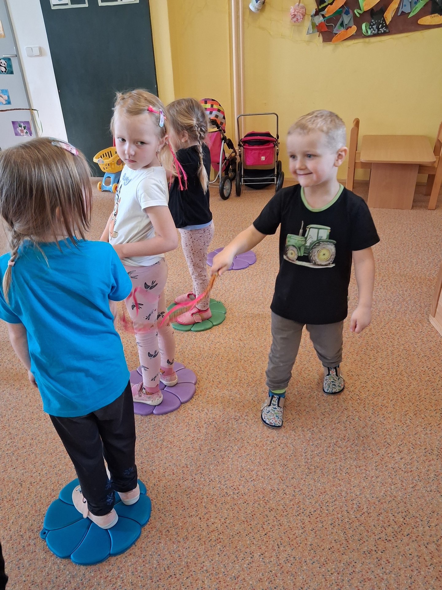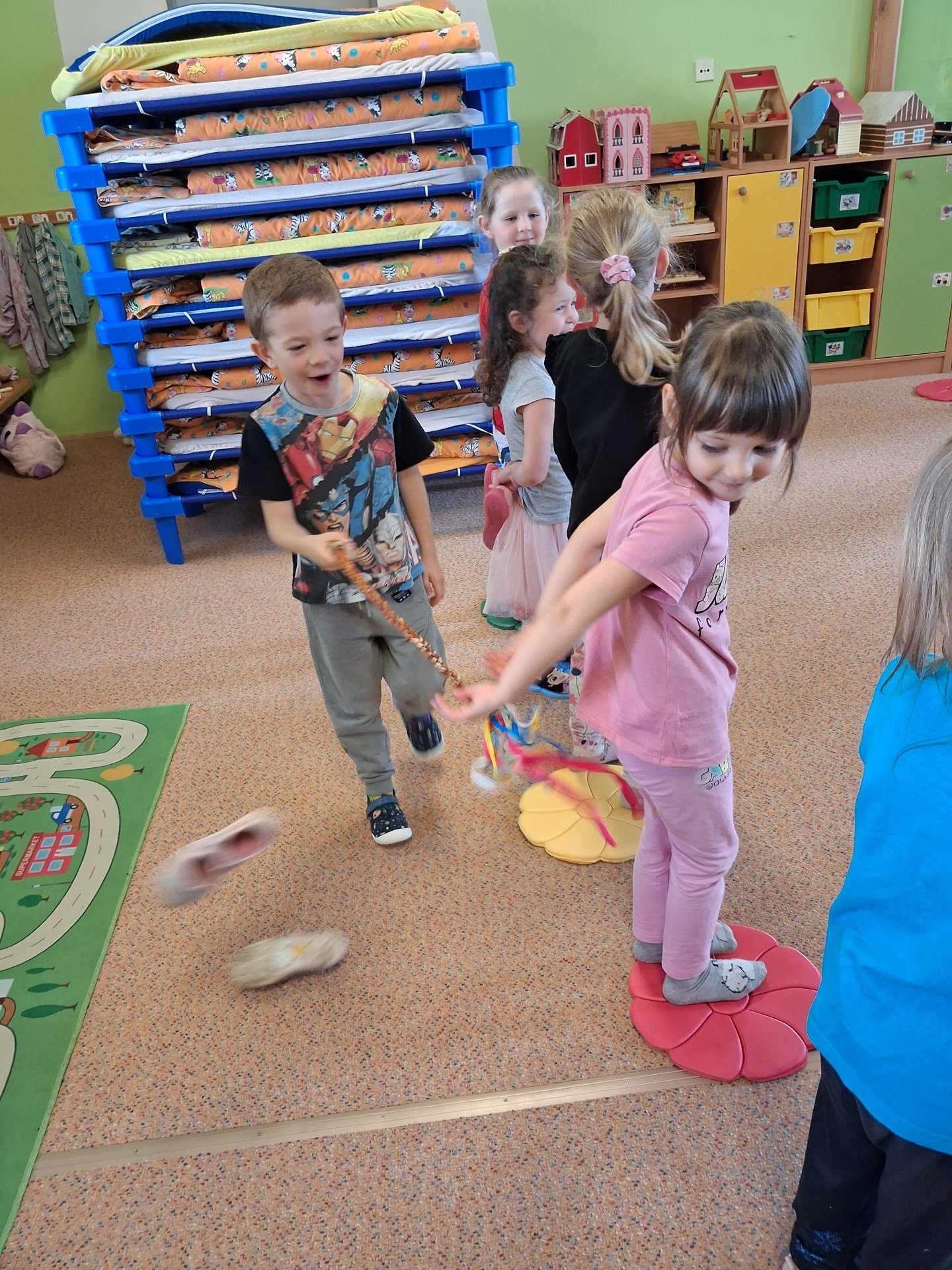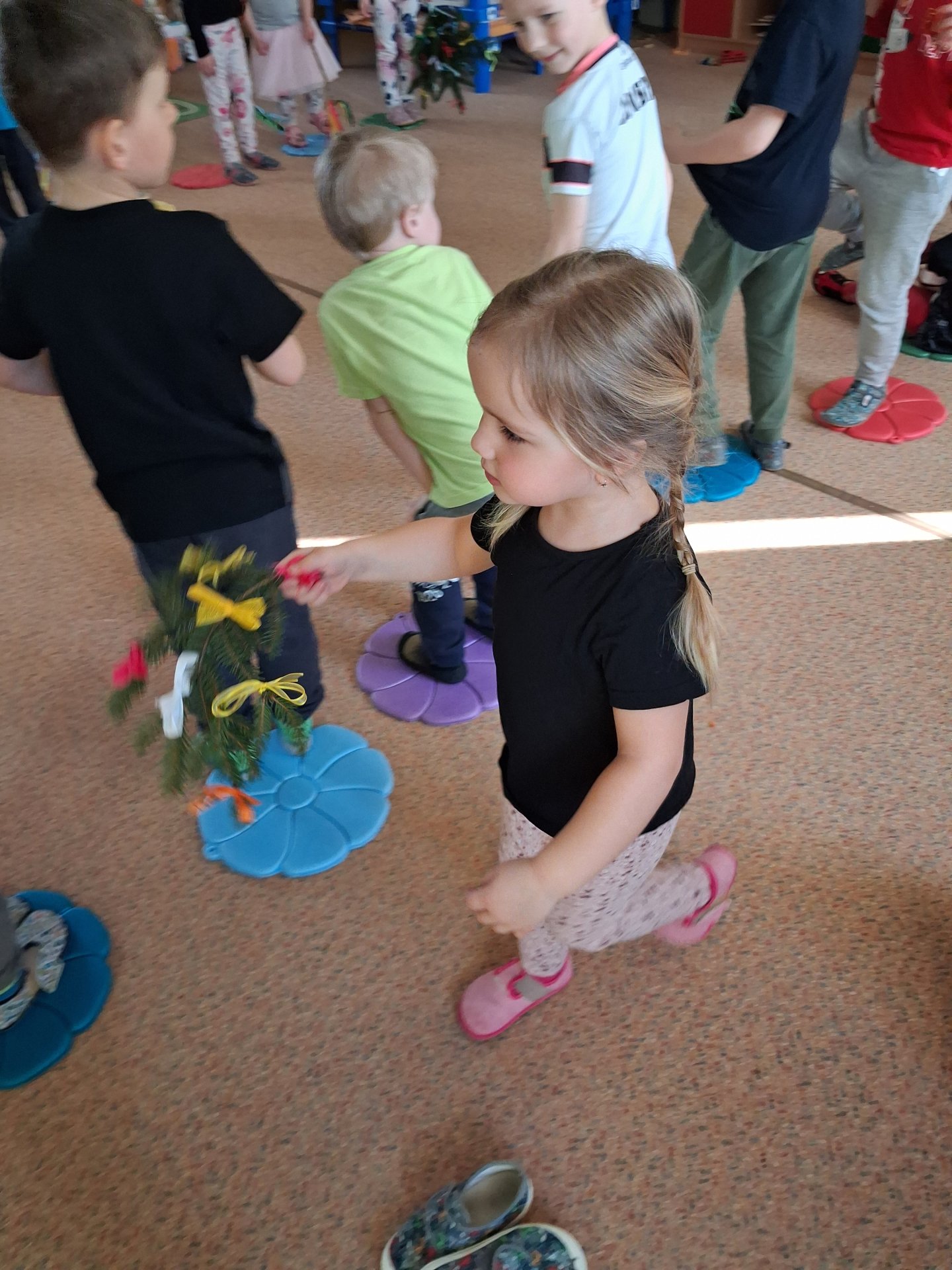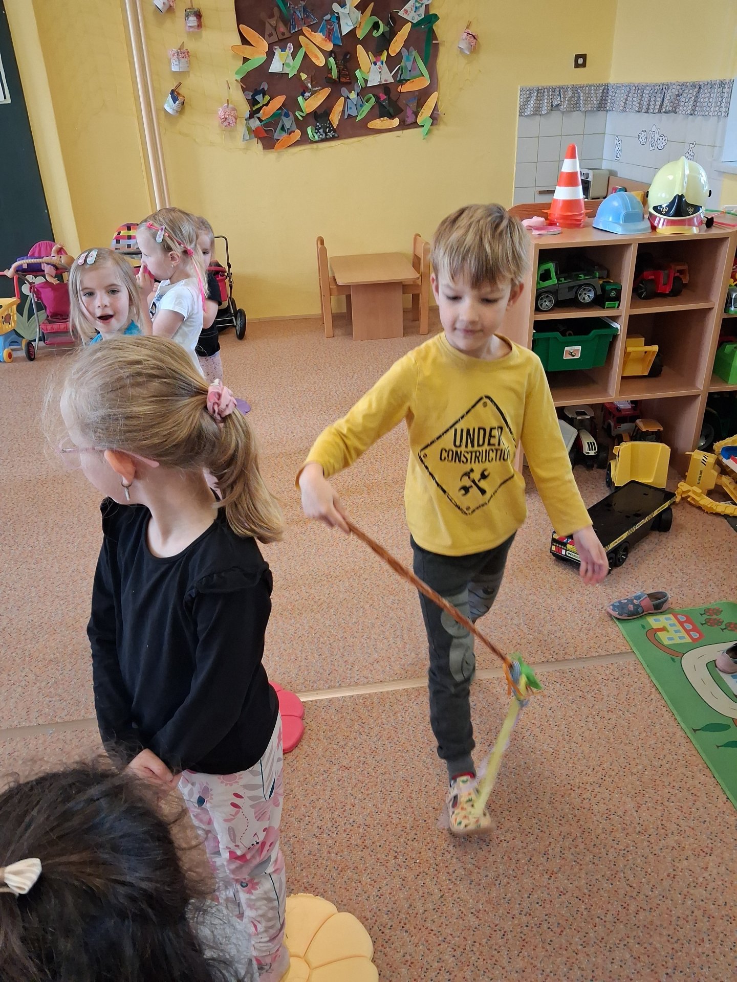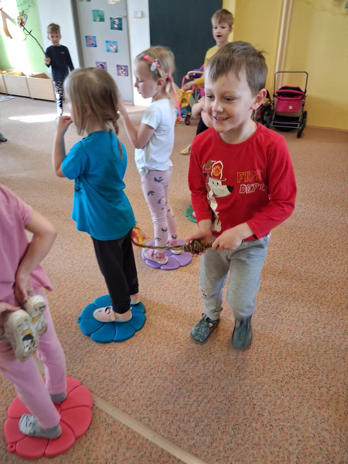 Na svátky jara - Velikonoce jsme se již moc těšili. Ve třídě si povídáme o tradicích, tvoříme a zpíváme koledy. Velikonoce ve školce vyvrcholily koledou, kdy koledovali kluci i holky. Každý si přinesl pomlázku nebo líto a vykoledoval své kamarády. Na zahradě děti čekalo i hledání vajíček s úkoly jako je třídění podle barev, třídění podle zdobení a předškoláci skládali záludné puzzle.